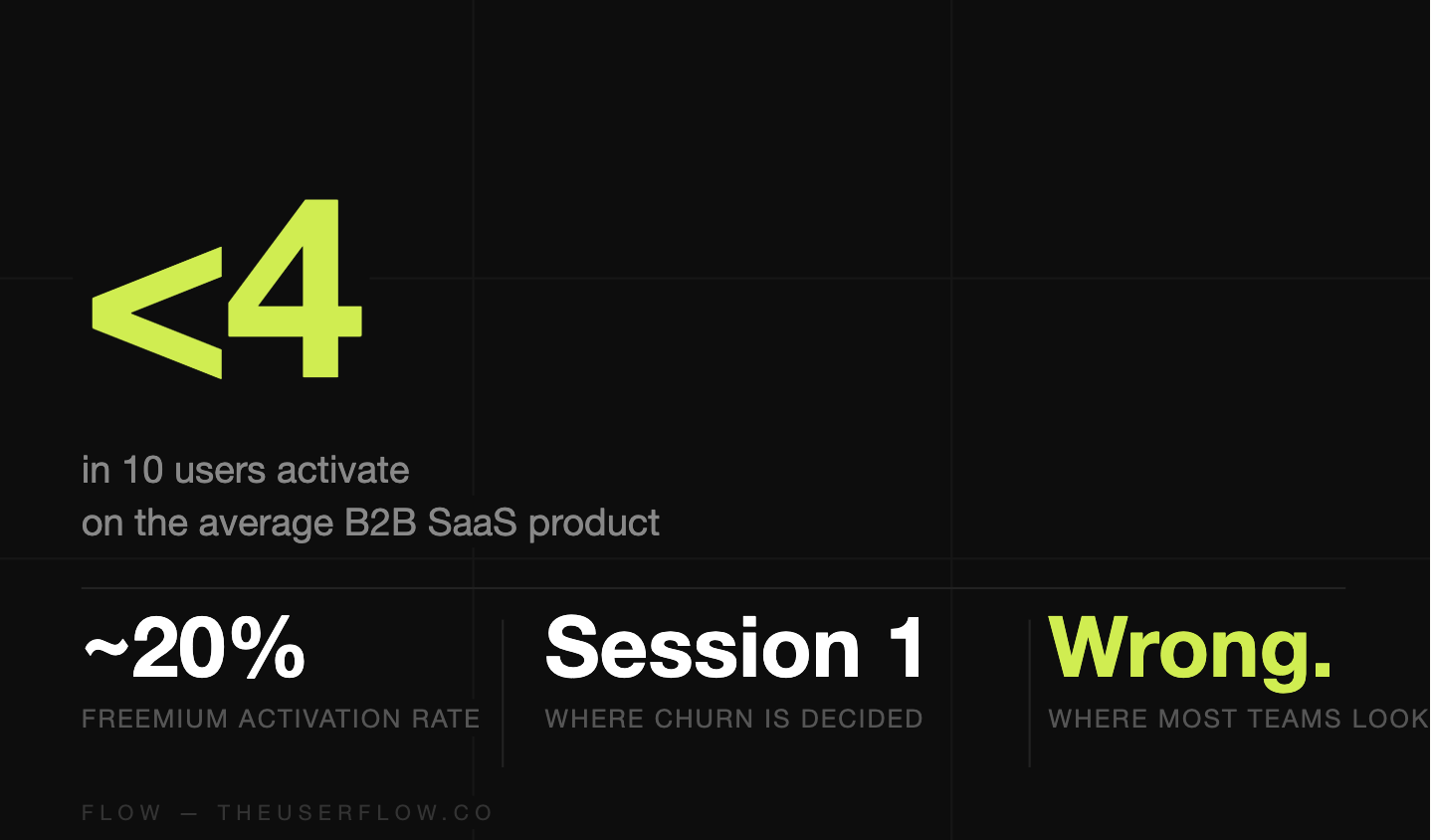 The average B2B SaaS product activates fewer than 4 in 10 users. Freemium products do worse, with activation rates sitting closer to 20%. And yet, when you ask most founders where their biggest drop-off happens, they point to the wrong stage almost every time.